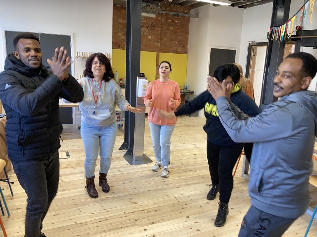 We’re still going strong, with the Creative Sanctuary group enjoying ‘Creative Inspire’ sessions from practitioners in puppetry, music, movement and theatre. Over the last year the sessions have been supported by Derby City Council, via their ESOL fund and by the Evan Cornish Foundation.